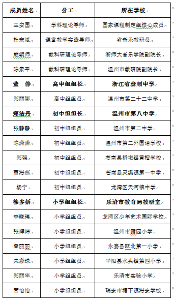 乐清市音乐教研员;中学高级;省教坛新秀、乐清市名师。