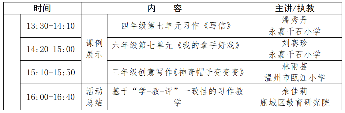 二、活动地点:永嘉千石小学阶梯教室;
