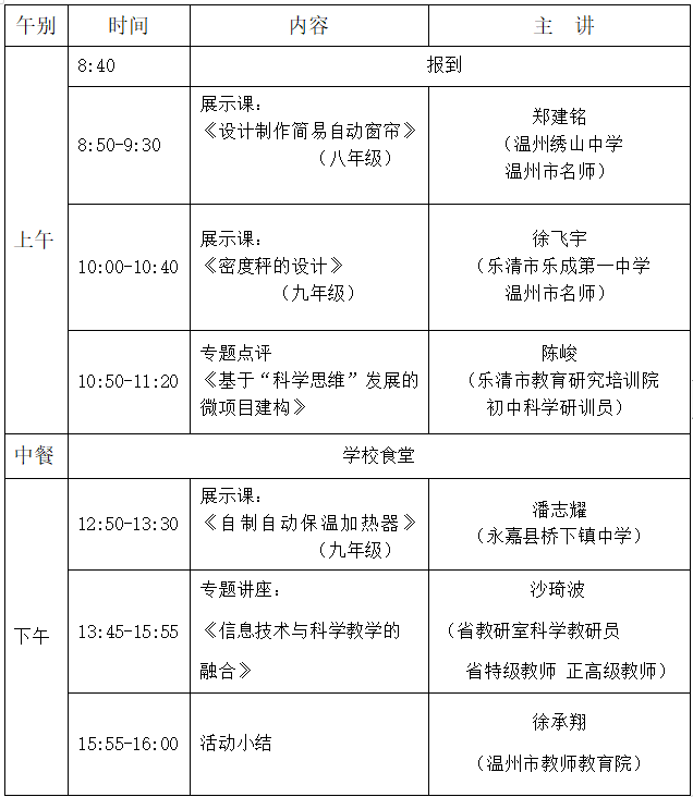 关于举行温州市徐承翔“名师送教”工作室第5次活动的通知