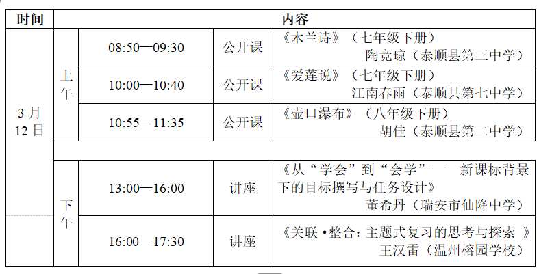 关于举行温州市王汉雷“名师送教”工作室第13次活动的通知