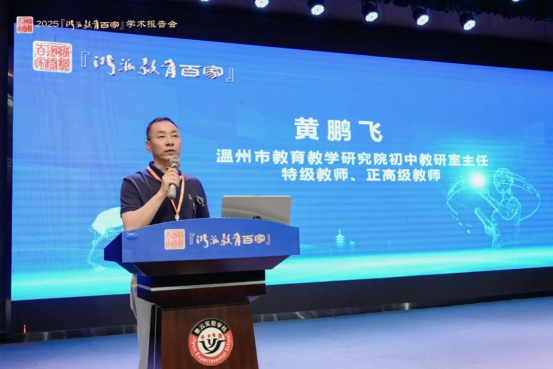 10月16日下午,黄鹏飞名师送教工作室第18次活动暨2025浙派教育百家学术报告会暨浙派教育名家思想研讨会分会场二在瑞安市集云实验学校隆重启幕。来自全省各地的专家代表与教育同仁300余人参会,分会场二由温州市教育教学研究院初中教研室主任、特级教师、正高级教师黄鹏飞主持会议。