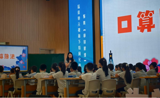 第二节课是由温州市广场路小学的吴初晓老师执教《口算除法》。吴老师以80个气球每班分20个,可分几个班?”的实际问题引入,引发学生对80÷20的探究。引导学生通过画图、计数器操作等多种方式,理解将80÷20转化为8÷2的算理,又结合实际问题引出估算的必要性,强调把数估成接近的整十数的重要性。整堂课以问题为导向,在自主探究与互动交流中,学生不仅掌握了口算除法的方法,更提升了数学思维能力,充分体会到数学与生活的紧密联系。