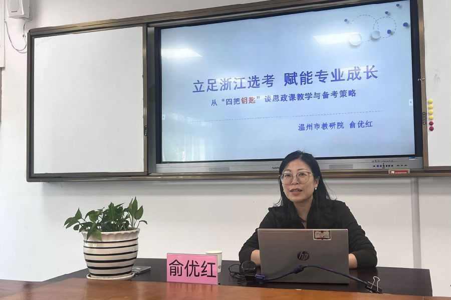 25日上午,工作室导师、市高中政治教研员、省特级教师、正高级教师俞优红老师做《从“四把钥匙”谈思政教学与备考策略》专题讲座。俞老师从心态、双基、技巧、成长四个维度分析了教师如何通过研究试题指导学生复习备考获得自身专业成长的路径。讲座后,工作室主持人单茹茹老师做研修历程回顾和展望,并以教育家于漪老师的名言寄语学员“一辈子做教师,一辈子学做教师”,勉励大家不懈努力持续发展。
